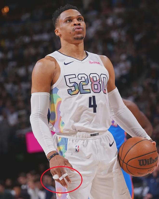 威少的右手是投篮手,受伤之后影响比较大。但他也不能休战,因为掘金能打球的人太少了。2024年夏天,威少2年680万美元加盟掘金,第二年球员选项。今年6月13日,威少放弃下赛季350万美元的球员选项,成为完全自由球员。
