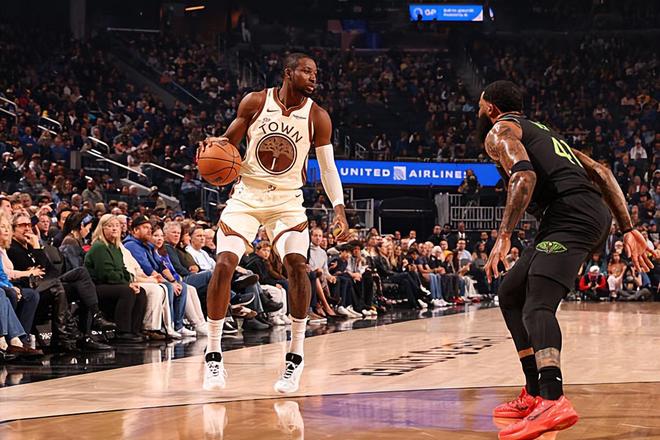本场比赛中,勇士的替补锋线新星乔纳森-库明加(Jonathan Kuminga)完成了复出,他在复出首战中的表现其实还是不错的。库明加全场出场18分48秒,投篮8中4,三分线外5中2,得到了10分1篮板2助攻的数据,还有2次失误和2次犯规,正负值为+2。库明加在进攻端没有得到太多的出手机会,但是他其实还是展现出了全面的得分能力,他的手感也是不差的,他也是抓住了有限的机会到了不少的分数。不仅如此,库明加在传球和策应方面也能够起到一些作用。然而问题就在于,在勇士这样一个没有中锋的阵容中,库明加甚至不得不担任五号位的角色,很显然他并不希望自己出现在这个位置上,他对此并不适应,他在场上的表现也不是特别兴奋,他在防守端的贡献度也不是太高。