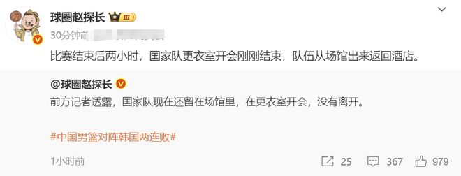 不光是发布会批评他们,而且还加紧开会,爆出这个消息的不是别人,是现场的CBA记者传来的消息。比赛结束之后是晚上7点,结果一直到9点中国男篮还留在场馆里,还在更衣室开会,还没有离开。临时增加开会,加开了整整两个小时。这就是他对于球手下球员们进行惩罚的一个方式。